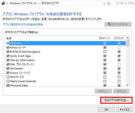 Windowsファイアウォールの例外にソフトを許可する例です。