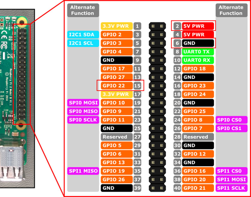 | Out | 15 (GPIO22) |